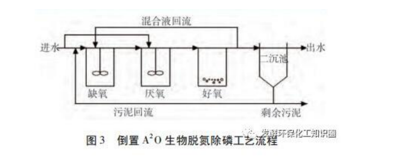 倒置A2O工艺整个系统的活性污泥都经历了厌氧和好氧的过程,排放的剩余污泥都能充分地吸磷,倒置A2O工艺适合C/P 较高,C/N较低的污水,一般当 BOD5/TN<4.BOD5/TP>20时,系统具有较好的脱氮除磷效果,倒置A2